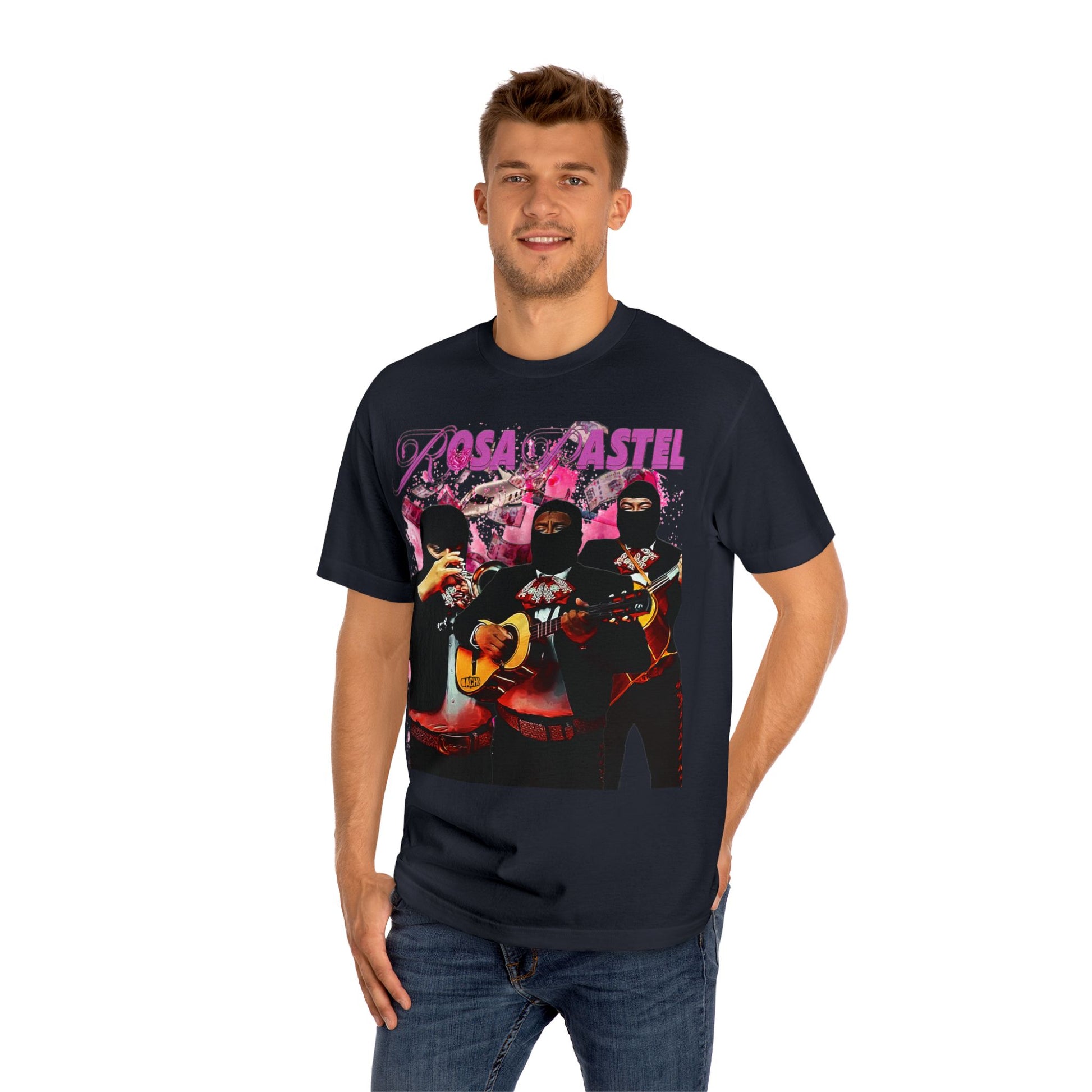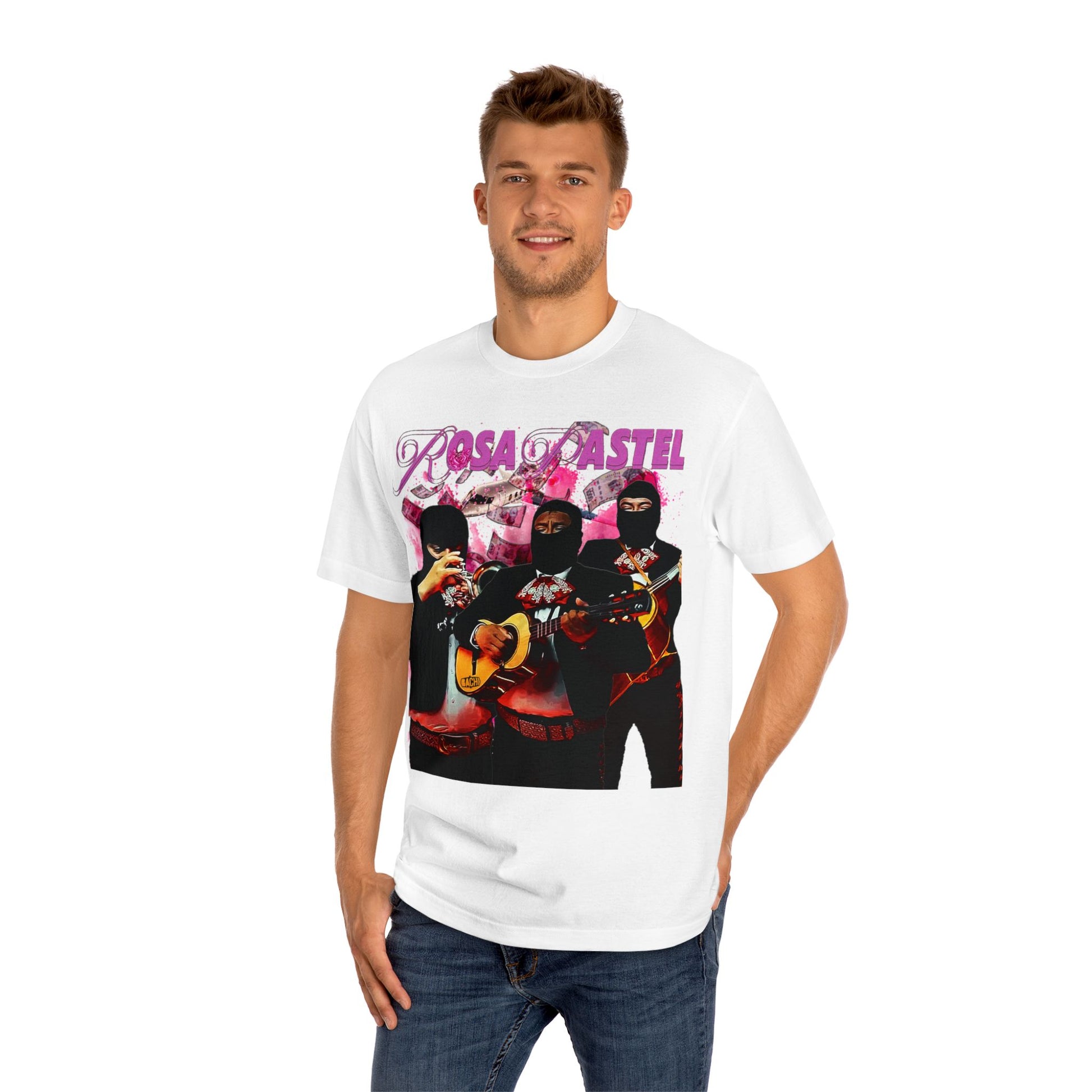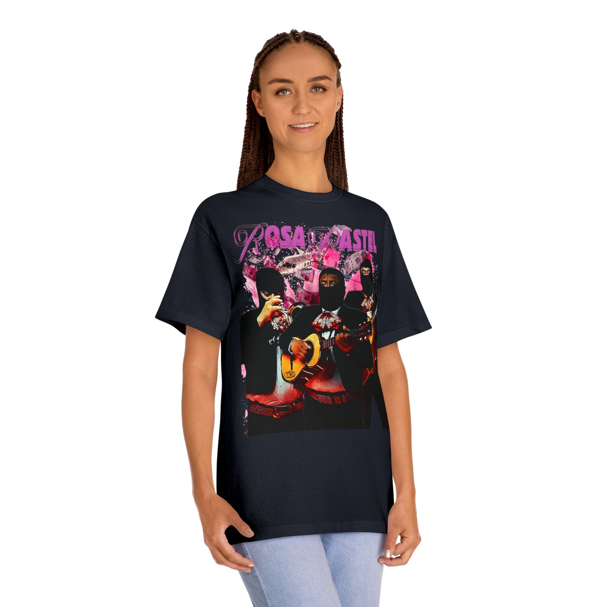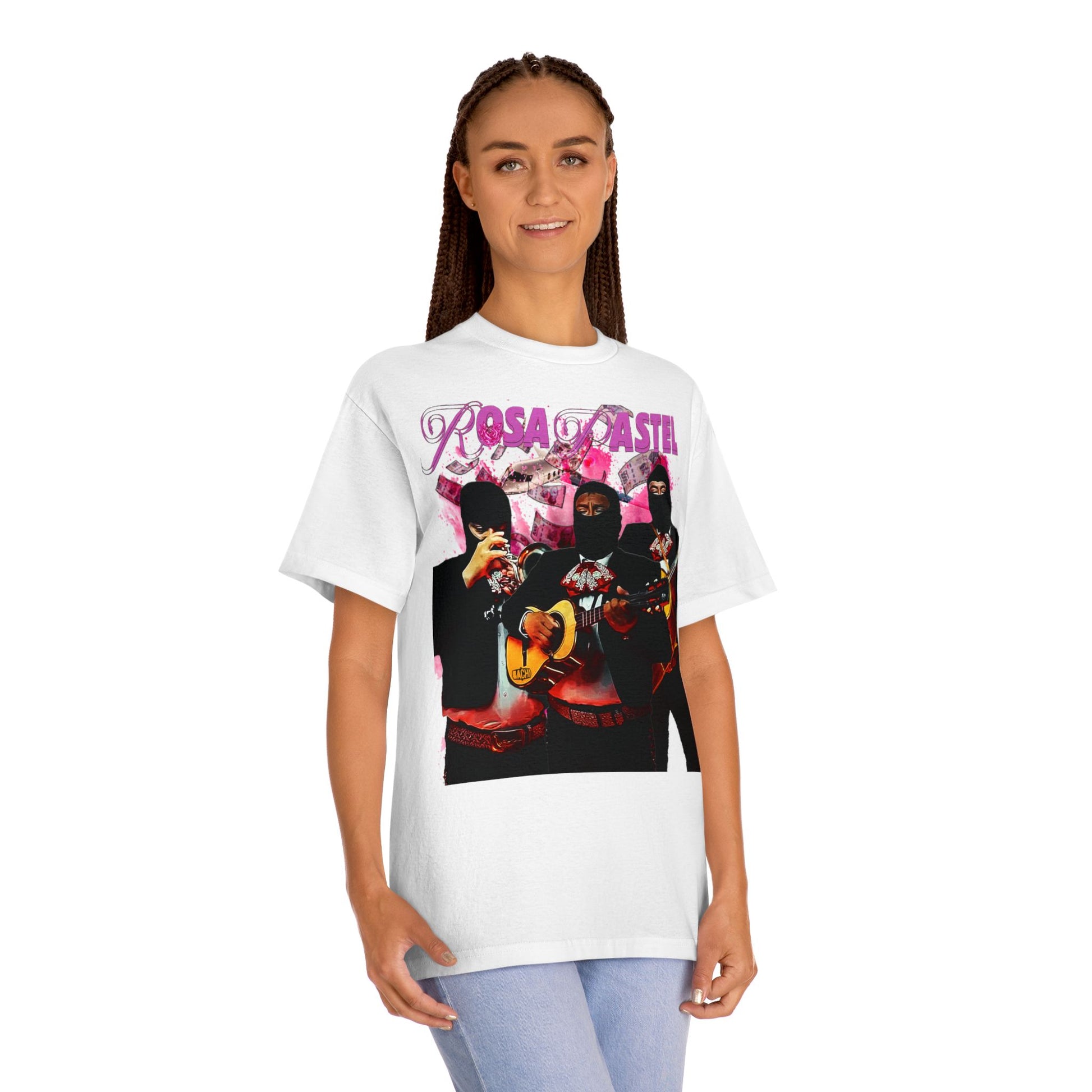 Experience the fusion of art and fashion like never before with the Peso Pluma 'Rosa Pastel' unisex t-shirt. This wearable canvas pays tribute to the mesmerizing creativity of this Mexican artist "Peso Pluma and his captivating song 'Rosa Pastel'. Let the essence of his music adorn you, transcending auditory delight into a visual Mexican traditional masterpiece with a modern touch.